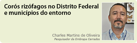 A exploração agrícola representa uma atividade econômica de grande importância para o Distrito Federal e entorno, e, como em qualquer região do país, o ataque de pragas se apresenta como um dos grandes desafios para a sustentabilidade dessa atividade. As pragas-de-solo se constituem em um dos grupos mais importantes e menos conhecidos de pragas que podem comprometer a exploração agrícola. Os corós rizófagos são larvas de besouros pertencentes à família Melolonthidae (Coleoptera: Scarabaeoidea) que vivem no solo e se alimentam exclusiva ou facultativamente de raízes, causando danos a diversas culturas. Os sintomas do ataque, geralmente, podem ser percebidos em reboleiras e se caracterizam por plantas de menor porte e amareladas devido ao consumo das raízes pelas larvas, murchamento, seguido de morte da planta. Entre as pragas-de-solo, os corós rizófagos têm se constituído em um dos grupos mais importantes em diversas culturas de alto valor econômico.