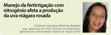 Atualmente, no Estado do Espírito Santo, o Manual de Recomendação de Calagem e Adubação (Dadalto e Fullin, 2001) indica a dose de N para a cultura da videira a partir da expectativa de produtividade e recomenda a aplicação parcelada durante o ciclo vegetativo-produtivo das plantas. Nesse sentido, a fertirrigação adquire uma importância muito grande, principalmente no cultivo de videira em regiões tropicais e de clima semi-árido, nas quais são obtidas até 2,5 safras de uva por ano.