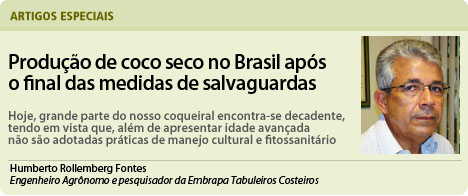 Diante do exposto, e em razão da inexistência de políticas governamentais de estímulo a cultura do coqueiro no Brasil, há necessidade de que os produtores de coco se adequem a esta nova realidade, aumentando principalmente no caso de pequenos produtores, a eficiência dos seus sistemas de produção, possibilitando assim a sua sobrevivência diante do aumento da competição com o produto importado, a qual, tende a se expandir ao longo dos anos. Deve-se observar ainda, que durante o período de vigência das medidas salvaguardas, não foram adotadas em grande parte, as chamadas “medidas de ajustes” solicitadas pela Organização Mundial do Comércio (OMC), que exigiam uma adequação da produção nacional a esta nova realidade, e que previam a recuperação e renovação das atuais áreas de plantio, possibilitando assim maior competitividade da nossa produção em relação ao produto importado. Neste contexto, o projeto Rede de transferência de tecnologias para revitalização das áreas cultivadas com coqueiros na baixada litorânea e tabuleiros costeiros do Nordeste do Brasil, coordenado pela Embrapa Tabuleiros Costeiros, iniciado em abril 2009 com previsão de encerramento para outubro deste ano, contribuiu de certa forma, para manutenção e prorrogação das medidas de salvaguardas, uma vez que atendiam em parte as citadas medidas de ajustes, realizando treinamentos e dias de campo com técnicos e produtores de coco.