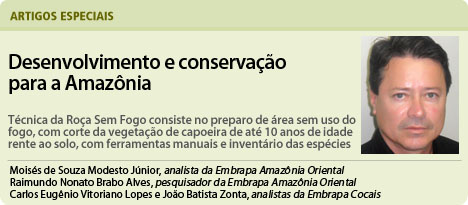ALVES, R.N.B.; MODESTO JÚNIOR, M. de S. ROÇA SEM FOGO: alternativa agroecológica para o cultivo de mandioca na Amazônia. In: XIII CONGRESSO BRASILEIRO DE MANDIOCA. Botucatu, SP, CERAT/NESP, 14 a 16 de julho, 2009.