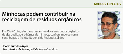 A reciclagem desses resíduos orgânicos pode ser facilitada diretamente pelas espécies de minhocas que se alimentam exclusivamente com resíduos orgânicos em decomposição (detritívoras). Em 45 a 60 dias, as minhocas transformam esses resíduos em adubos orgânicos de alta qualidade, o húmus de minhocas. Elas são colocadas em minhocários constituídos por caixas plásticas fechadas (foto), encaixadas umas sobre as outras de forma prática, onde são colocados também os resíduos orgânicos para serem reciclados por elas. As caixas podem ser colocadas nos quintais das residências, varandas de apartamentos e áreas externas de empresas, instituições públicas e privadas, escolas e condomínios. Cada quatro caixas de 35 l sobrepostas formam um kit de reciclagem de resíduos orgânicos. Um conjunto de quatro kits ocupa pequena área de 2,4 m de comprimento por 0,6 m de profundidade (1,44m2), e é suficiente para reciclar todo o resíduo orgânico produzido numa residência com três pessoas, considerando que a cada 60 dias o húmus fica pronto.