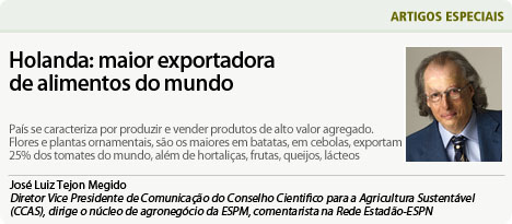 Sucesso na Copa do futebol foi a Holanda, dando de 5 X 1 na campeã do mundo Espanha e de virada venceu a Austrália por 3 x 2. E no agronegócio a Holanda é a segunda maior exportadora de alimentos do mundo. Fica somente atrás dos Estados Unidos, e ainda na frente do Brasil, vendendo cerca de 76 bilhões de euros por ano.