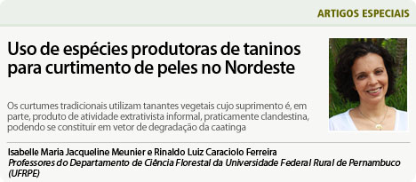 O extrativismo de produtos tanantes precisa ser melhor conhecido para que se avaliar os impactos causados e as oportunidades que pode representar para a geração de renda às comunidades do semiárido nordestino. Assim, se procurou relatar as características gerais do sistema de curtimento do couro no Nordeste do Brasil, buscando refletir sobre o potencial da atividade para a promoção da produção florestal sustentável na região semiárida do Brasil.