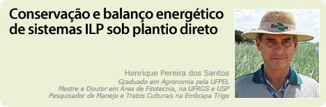 No Brasil, pouca atenção se tem dado às formas e caminhos com que os fluxos energéticos se distribuem nos sistemas produtivos. Na agropecuária, a atenção tem sido voltada a novas fontes de energia ou em tecnologia alternativa, visando a racionalização do uso de energia fóssil. Uma das maneiras de serem avaliados a disponibilidade e o consumo de energia é por meio da conversão e do balanço energético. Na Embrapa Trigo, em ensaios de longa duração, tem sido estudando a conversão e o balanço energético em sistemas de produção com a Integração Lavoura-Pecuária (ILP), sob Plantio Direto.