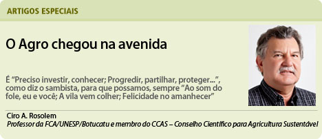 A Vila Isabel está de parabéns. Seria o retorno ao reconhecimento público desse setor fundamental para o ser humano e essencial para a economia brasileira? Entretanto, mais que o reconhecimento público na avenida, o setor precisa de atenção dos governantes, dos legisladores que, a cada ano, atendendo a interesses mal explicados, vem colocando amarras legislativas e regulamentatórias que atrapalham o desenvolvimento no campo. Por mais que nossos institutos de pesquisa, universidades e empresas invistam no desenvolvimento de tecnologia, é necessária uma legislação atual, em passo com o que ocorre no restante do globo, para que possamos competir.