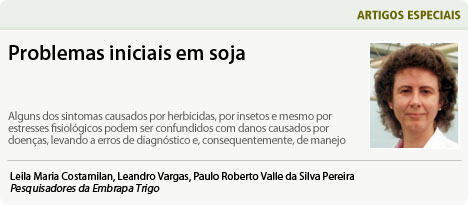 Muitos agricultores e técnicos, ao observarem plantas de soja com problemas após a emergência, logo pensam em doenças como possíveis causas. Porém, alguns dos sintomas causados por herbicidas, por insetos e mesmo por estresses fisiológicos podem ser confundidos com danos causados por doenças, levando a erros de diagnóstico e, consequentemente, de manejo.